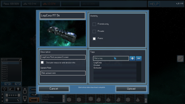 In the options menu of the ship editor you can now find a new menu that will open up the Steam Workshop exporter. Here you are able to set several options for your files and add tags, descriptions and a default screenshot.